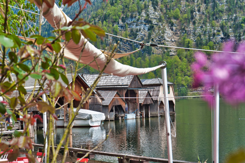 In einer Zeit, da sich anderswo die eher entmutigende Diskussion darüber, was zu diesem oder jenem gehöre, im Vagen dahinquält, lassen die Hallstätter original-chinesische Lampions über Biergartentischen baumeln, wohl zum Zeichen, dass's "scho passt". Die Farben passen - zur stillen Freude des Fotografen - allemal...